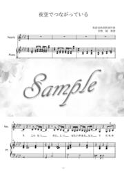 「夜空でつながっている」(ハウス食品プライムCM曲)のピアノ弾き語り楽譜(伴奏譜)です。メロディー、その下にひらがな歌詞、その下にピアノ伴奏譜という構成で、全5ページです。ペダル前提で作ってありますが、記載はしておりません。