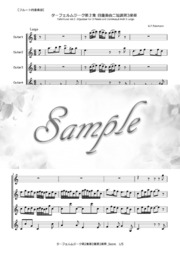 テレマンの代表曲 「食卓の音楽」から『ターフェルムジーク第2集 四重奏曲ニ短調第3楽章』の【ギター四重奏・アンサンブル譜】です。スコア・パート譜付き。