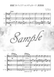 歌劇「カヴァレリア・ルスティカーナ」より「間奏曲」をトロンボーン4重奏にしました。最高音は1stのハイB♭上のC、最低音はペダルB♭、曲の長さは2分30秒位です。パート譜4枚、スコア3枚のセットになります。Siberius7firstで作成しました。楽器で試し吹きしていないため、おかしなところがありましたら手直しして使って下さい。