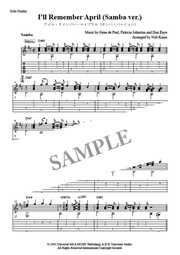 ジャズスタンダードのアイル・リメンバー・エイプリル(I'll Remember April)のソロギター譜です。ラテンのリズムで演奏されることが多い曲なのでサンバ風です。アドリブ譜例(譜面のリハーサルマークD以降)は譜面どおり演奏してもOKですし、独自でアドリブをされる際の参考になればとも思います。