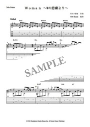薬師丸ひろ子さんの「Woman ~Wの悲劇より~」のソロギター譜です。作曲者の呉田軽穂は松任谷由実さんが他の歌手に曲を提供するときのペンネームですね。中級レベルの方なら比較的容易に弾けるかと思います。