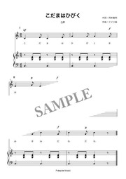 輪唱「こだまはひびく」伴奏付き楽譜です。3声の輪唱ができます。