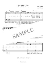 阿部直美作詞/作曲 遊び歌「みつばちプン」弾き歌い楽譜です。2人組手遊びです。遊び方メモつき、コードネームつき、PDF1ページです。