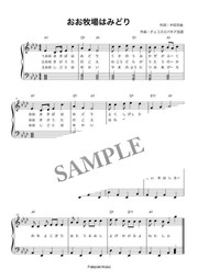 「おお牧場はみどり」弾き歌い楽譜です。コードネーム付き、PDF1ページです。