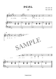 輪唱「かにさん」伴奏付き楽譜です。3声の輪唱ができます。PDF1ページです。