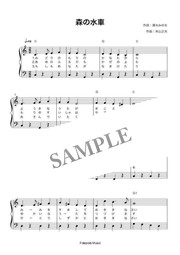 「森の水車」弾き歌い楽譜です。コードネーム付き、PDF2ページです。