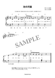 遊び歌「池の河童」弾き歌い楽譜です。コードネーム付き、遊び方メモ付き、PDF1ページです。
