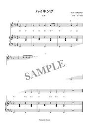 輪唱「ハイキング」伴奏つき楽譜です。4声の輪唱ができます。PDF1ページです。