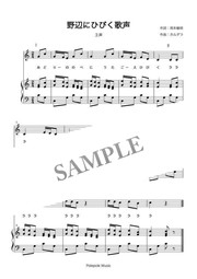 輪唱「野辺にひびく歌声」伴奏付き楽譜です。3声の輪唱ができます。PDF1ページです。