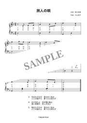 野口雨情作詞/中山晋平作曲 「旅人の唄」弾き歌い楽譜です。5番までの歌詞付き、PDF1ページです。