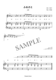 輪唱「ふるさと」伴奏付き楽譜です。2声の輪唱ができます。PDF1ページです。