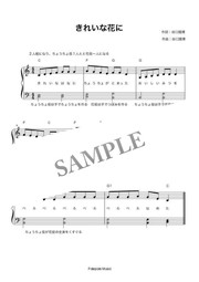 谷口國博作詞/作曲 遊び歌「きれいな花に/春のあそびうた」弾き歌い楽譜です。ちょうちょとお花2人組で遊びます。遊び方メモ付き、コードネーム、PDF1ページです。