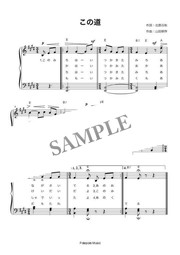 北原白秋作詞/山田耕筰作曲 「この道」弾き歌い楽譜です。コードネーム付き、PDF1ページです。