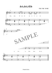 輪唱「みんみんぜみ」伴奏付き楽譜です。3声の輪唱ができます。PDF1ページです。