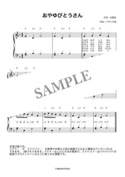 手遊び歌「おやゆびとうさん」弾き歌い楽譜です。簡単な楽器アンサンブルで楽しむこともできます。コードネームつき、遊び方メモつき、PDF1ページです。