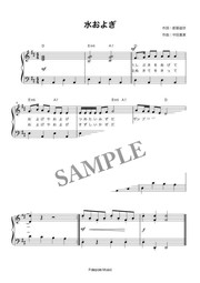都築益世作詞/中田喜直作曲 「水およぎ」弾き歌い楽譜です。コードネームつき、PDF1ページです。