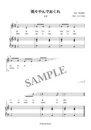 輪唱「雨々やんでおくれ」伴奏付き楽譜です。3声の輪唱ができます。PDF1ページです。