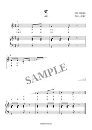 輪唱「虹」伴奏付き楽譜です。4声の輪唱ができます。PDF1ページです。
