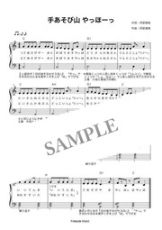 阿部直美作詞/作曲 手あそび歌「手あそび山やっほーっ」弾き歌い楽譜です。2人組で親指~小指で遊び、後半はこだまごっこもします。遊び方メモつき、コードネームつき、PDF1ページです。