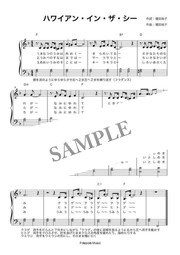 増田裕子作詞/作曲 遊び歌(フラダンス)「ハワイアン・イン・ザ・シー」弾き歌い楽譜です。踊り方メモつき、コードネームつきPDF1ページです。