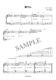 「風りん」弾き歌い楽譜です。コードネームつき、PDF1ページです。