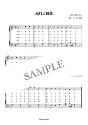 「光れよお星」弾き歌い楽譜です。キラキラ星のメロディーです。4番までの歌詞つき、PDF1ページです。
