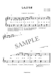 谷口國博作詞/作曲 「しんごうき」遊び歌 弾き歌い楽譜です。2人組で遊びます。遊び方メモつき、コードネームつき、PDF1ページです。
