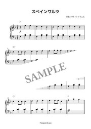 ワルトトイフェル作曲「スペインワルツ」初級者向けピアノソロ楽譜です。PDF2ページです。