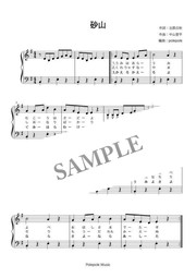 「森のくまさん」メロディーを両手で弾く楽譜です。コードネームを付けてありますので、伴奏をつけてアンサンブルもできます。指番号付き、PDF1ページです。