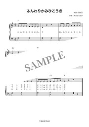 高杉正作詞/中川ひろたか作曲 「ふんわりかみひこうき」弾き歌い楽譜です。コードネーム付き、PDF1ページです。