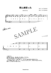 ともろぎゆきお作詞/作曲 あそびうた「熊ん蜂怒った」弾き歌い楽譜です。鬼を真ん中にみんなで囲い歌い終わったら、鬼ごっこ!遊び方メモ付き、PDF1ページです。