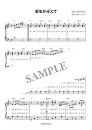 川崎やすひこ作詞/新沢としひこ作曲 追いかけ歌「星をかぞえて」弾き歌い楽譜です。コードネーム付き、PDF2ページです。イントロとエンディングはハモれるようになっています。