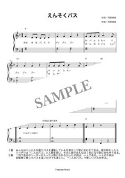 あそびうた「えんそくバス」弾き歌い楽譜です。一人で運転を始めて、リーダーの○人のバスの掛け声で、繋がってバスで走ります。遊び方メモ付き、コードネーム付きPDF1ページです。