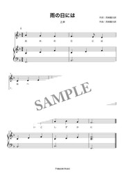 輪唱「雨の日には」伴奏付き楽譜です。2声の輪唱ができます。PDF1ページです。