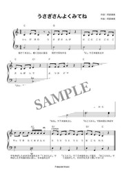 阿部直美作詞/作曲 指遊び歌 「うさぎさんよくみてね」弾き歌い楽譜です。1~10本指まで歌に合わせて出して遊びます。遊び方メモ、コードネーム付き、PDF1ページです。