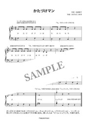 遊び歌「かたづけマン」弾き歌い楽譜です。かたづけの前にちょっと歌い遊ぶなど、またポーズを3つ決めておいてゲームにもできます。遊び方メモ付き、PDF1ページです。