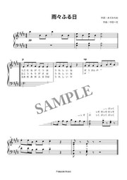 まどみちお作詞/中田一次作曲 「あめあめふる日」弾き歌い楽譜です。PDF1ページです。