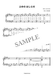 まどみちお作詞/別宮貞雄作曲 「ふゆのおしらせ」弾き歌い楽譜です。クマとうさぎが出てきます。PDF1ページです。
