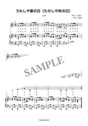 輪唱「うれしや春の日」伴奏付き楽譜です。秋の言葉に変えれば「たのしや秋の日」になります。冬や夏パターンもオリジナルで作っても楽しいです。2声の輪唱になります。PDF1ページです。