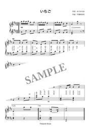 まどみちお作詞/宇賀神光利作曲 「いちご」弾き歌い楽譜です。PDF1ページです。