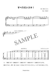 手遊び歌「すべりだいスキ」弾き歌い楽譜です。1~5本指で腕を滑り降りて遊びます。(体のいろいろなところで滑ると楽しいです。)遊び方メモ付き、PDF1ページです。