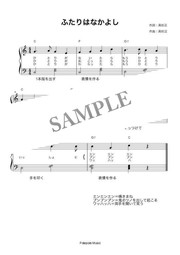 「ふたりはなかよし」弾き歌い楽譜です。遊び方メモ付き、PDF1ページです。