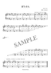 わらべうた「ぼうさんぼうさん」弾き歌い楽譜です。かごめのように遊びます。遊び方メモ付き、PDF1ページです。