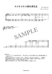 「トントントンあたまだよ」弾き歌い楽譜です。手を叩いたり、うたの通りに手を体に置いたりします。いろいろな替え歌ができます。遊び方メモ付き、PDF1ページです。