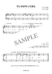 谷口國博作遊び歌「サンタがやってきた」弾き歌い楽譜です。手拍子したり、荷物を担いだりプレゼントのポーズをして遊びます。遊び方メモ付き、PDF1ページです。