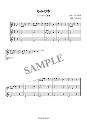 リコーダー三重奏「もみの木」ハ長調です。ソプラノリコーダー3本で演奏できます。PDF1ページです。