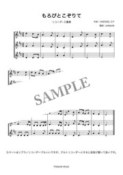リコーダー三重奏「もろびとこぞりて」ニ長調です。1、2パートはソプラノリコーダーで3パートもソプラノでも吹けますがアルトリコーダーにすると低音が響いて素敵です。PDF1ページです。