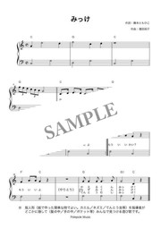 「みっけ」弾き歌い楽譜です。保育者が指人形などポケットなどに隠して歌います。(やりとり)でヒントなどを言います。遊び方メモ付き、PDF1ページです。