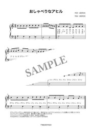 「おしゃべりなアヒル」弾き歌い楽譜です。アヒルのように歩きながら歌います。遊び方メモ付き、PDF1ページです。