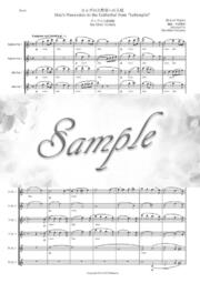 製品構成:スコア、フルート+オーボエ+Aクラリネット1、2+ホルン1、2+バスーン+コントラバスーン(又はバスーン2)のPDF